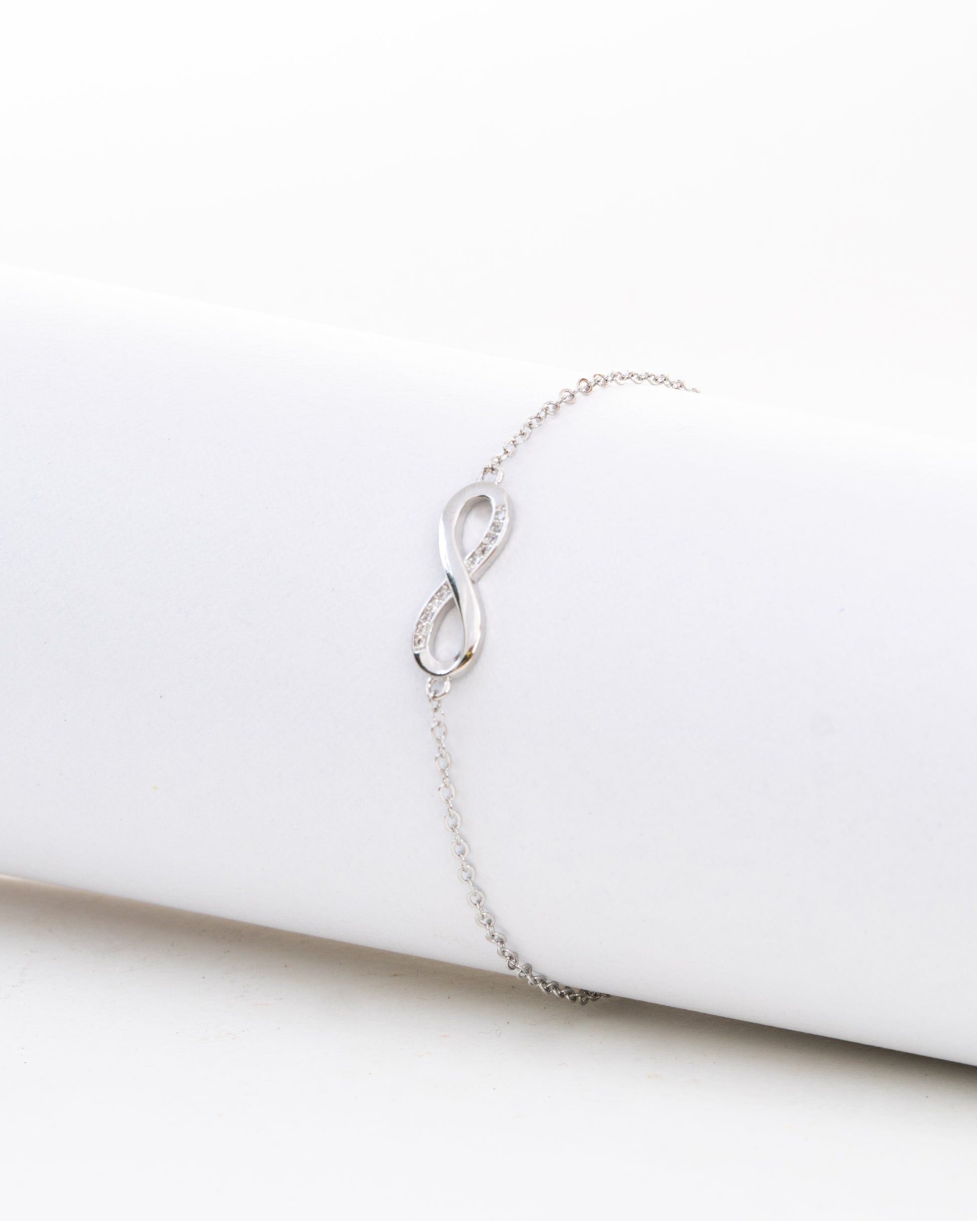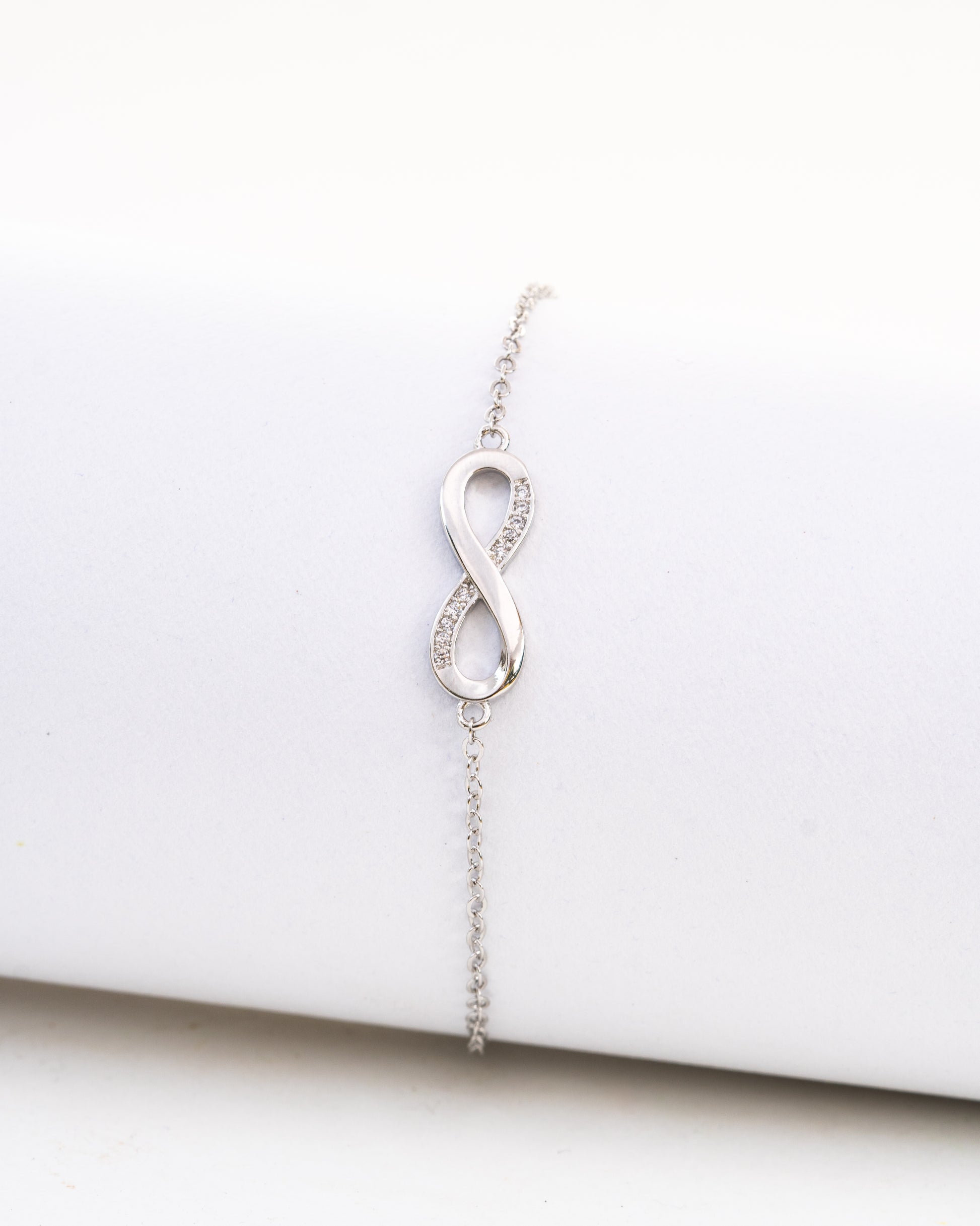 Embrace timeless elegance with our Crystal Infinity Chain Bracelet. This delicate piece features a shimmering infinity symbol adorned with brilliant crystals, set against a fine sterling silver chain with anti-tarnish coating. Perfect for everyday wear, the dainty design symbolizes endless possibilities while adding a subtle sparkle to your look. The anti-tarnish finish ensures your bracelet maintains its radiant shine day