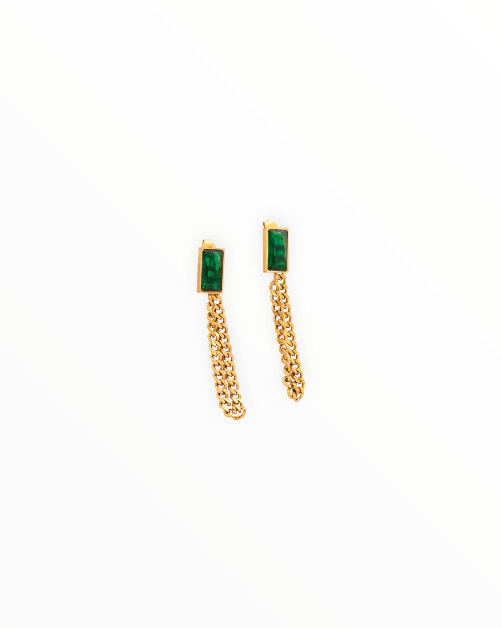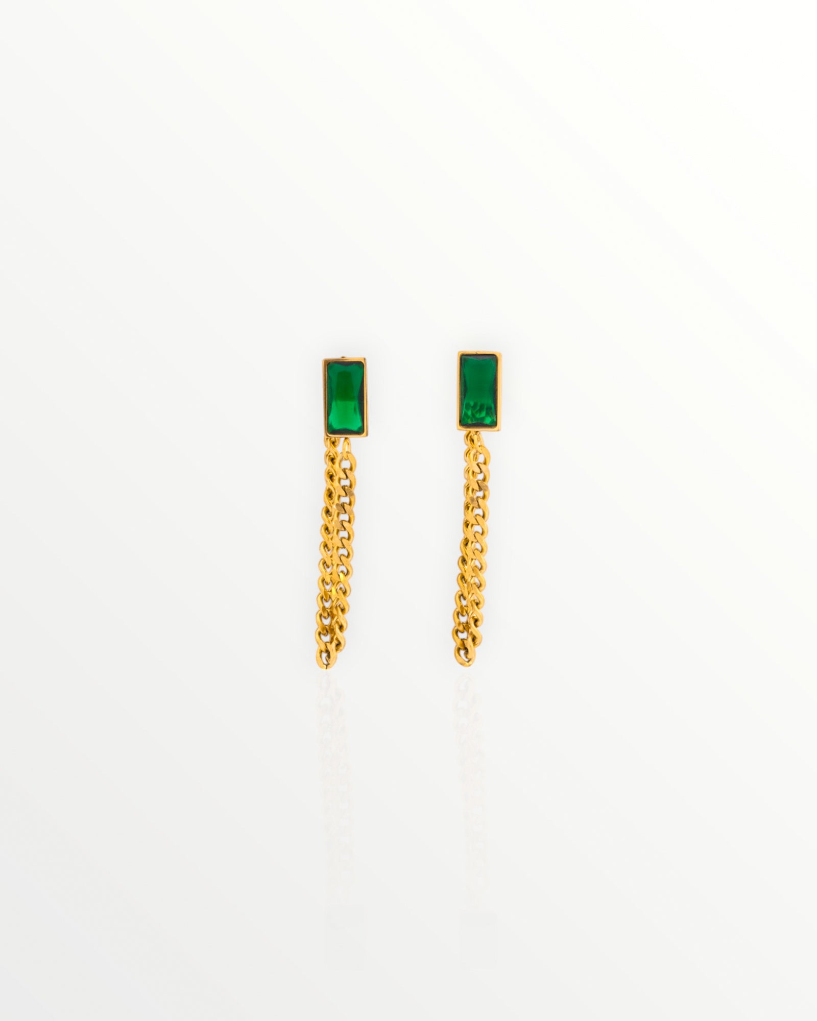 Emerald Rectangle Gold Chain Drop Earrings - Luxury Statement Jewelry